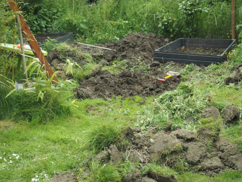 Warzywnik, który na poczatku omyłkowy był brany za łóżka, potem grobowisko aż wreszcie stał się grządkami z cukinią, groszkiem, ziemniakami, papryką, ogórkami i 2 krzaczkami pomidorów ;)))